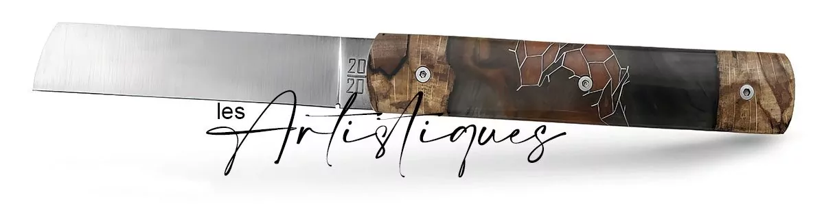 Ce couteau “le 20/20®“, prononcez 20 sur 20, loin des standards habituels, brille par son originalité. Crée en 2020, il vous est aujourd’hui proposé dans sa version “Les Artistiques”. Chaque manche est une création artistique originale et unique. Il n’y en a pas deux pareil.