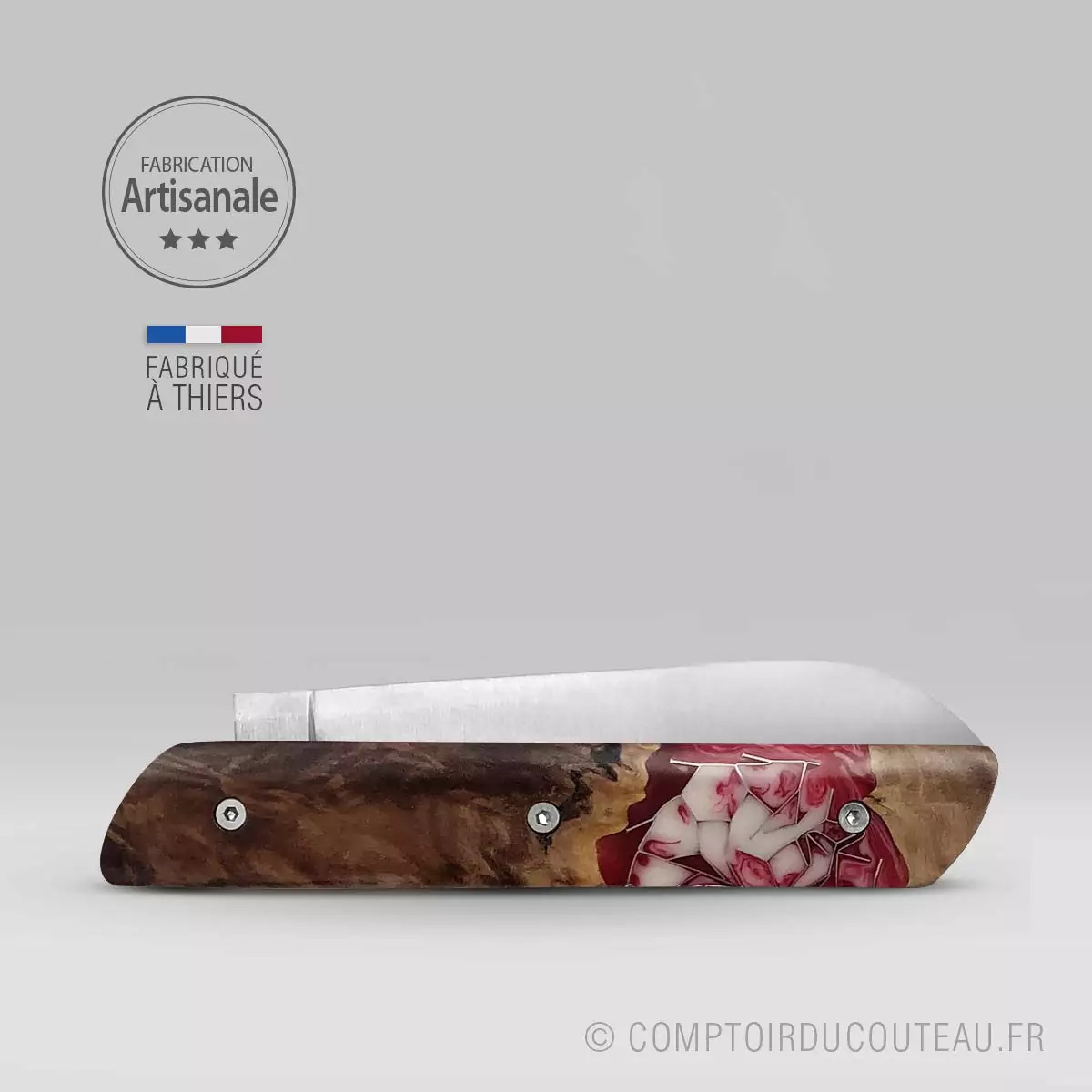Il innove également avec ses modèles “Gravures” et “Marqueteries” obtenus grâce au laser profond, issu d’une technologie de pointe dont Le Fidèle fut la première coutellerie à s’équiper.