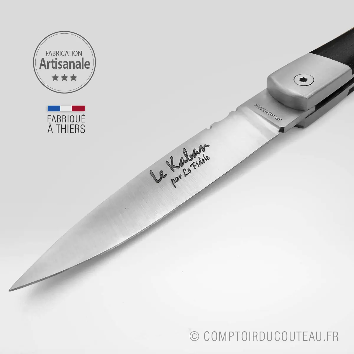 Il innove également avec ses modèles “Gravures” et “Marqueteries” obtenus grâce au laser profond, issu d’une technologie de pointe dont Le Fidèle fut la première coutellerie à s’équiper.